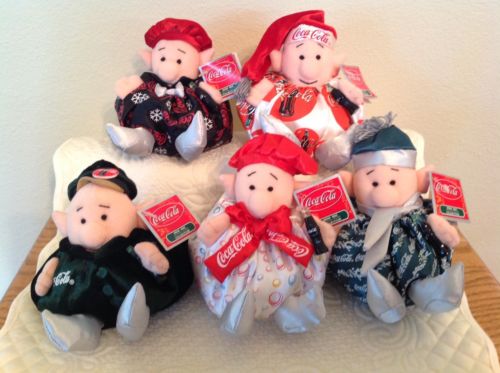 Title (ebay affiliate link): 5 ~ New ~ 2001 Coca Cola Bean Bag Christmas Elves Elf Holiday