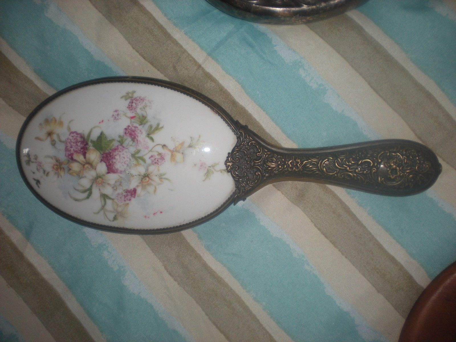 Title (ebay affiliate link): Antique Victorian Porcelain Hand Mirror Delicate Daisy and raspberries design.