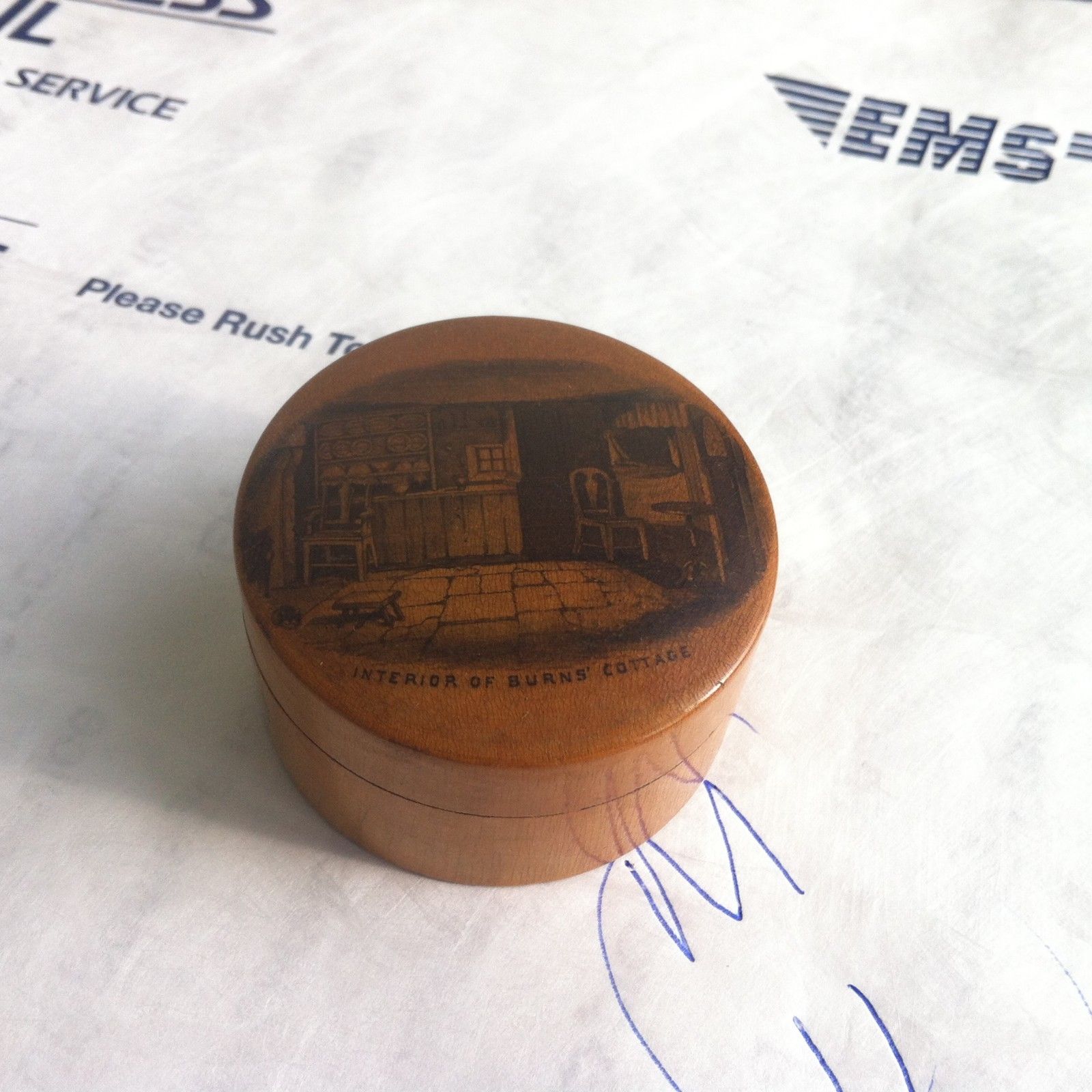Title (ebay affiliate link): Antique Mauchline Treen Woodenware Interior of Burns Cottage lot 11