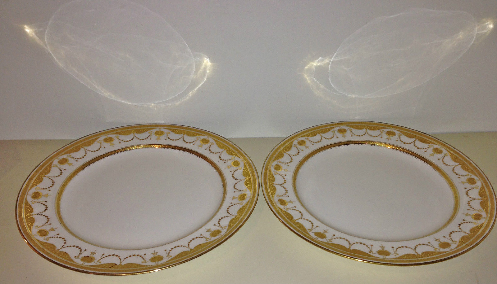 Title (ebay affiliate link): 2 Antique 1900''s Minton Gold Embossed G7962 10"Dinner Plates Gilman Collamore NY