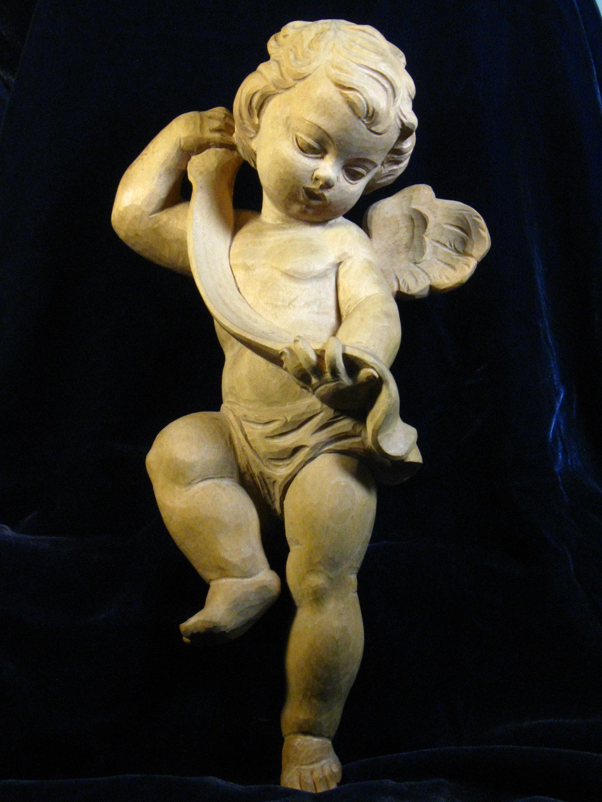 Vintage Hand Carved Wood Cupid