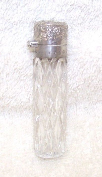 Title (ebay affiliate link): Antique Sterling Silver Diamond Shaped Cut Glass Perfume Bottle W/Dauber/Stopper
