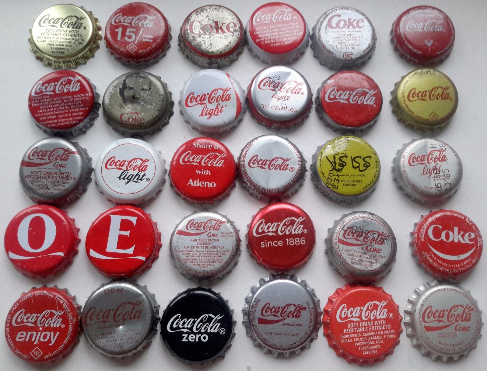 great! 30 worldwide Coca Cola bottle caps chapas capsules kronkorken 1980-2010