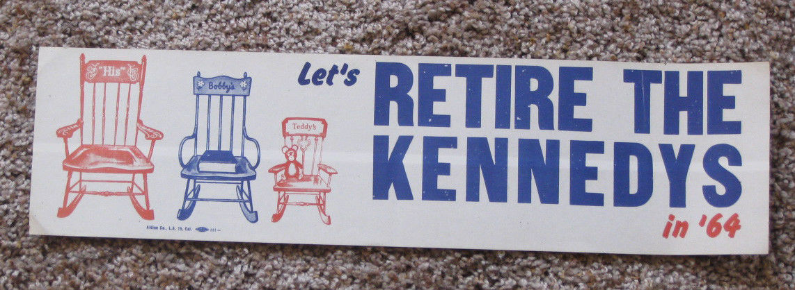 1964 JFK "LET''S RETIRE THE KENNEDYS in ''64" ROCKING CHAIRS DESIGN BUMPERSTICKER