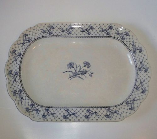 Large 19th Century English Ironstone Blue & White Transferware Botanical Platter