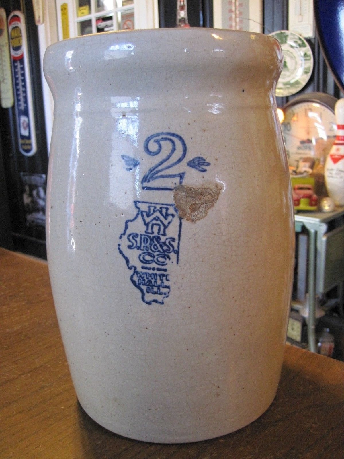 RARE Antique White Hall WH SP&S 2 Gallon Stoneware Glaze Churn Crock Ruckles