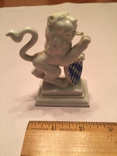 Nymphenburg Heraldic Lion Porcelain Figurine Blue White Shield 705