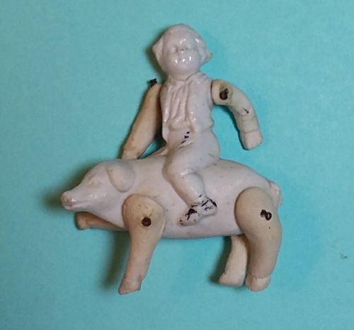 Title (ebay affiliate link): RARE Antique/Vintage 19 Century Bisque Pig Figurine with Child Riding Early Toy