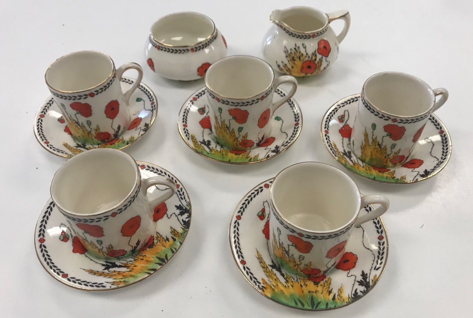 English Ducal Crown Ware A1915 5 coffe cups and saucer, sugar bowl and cream jug