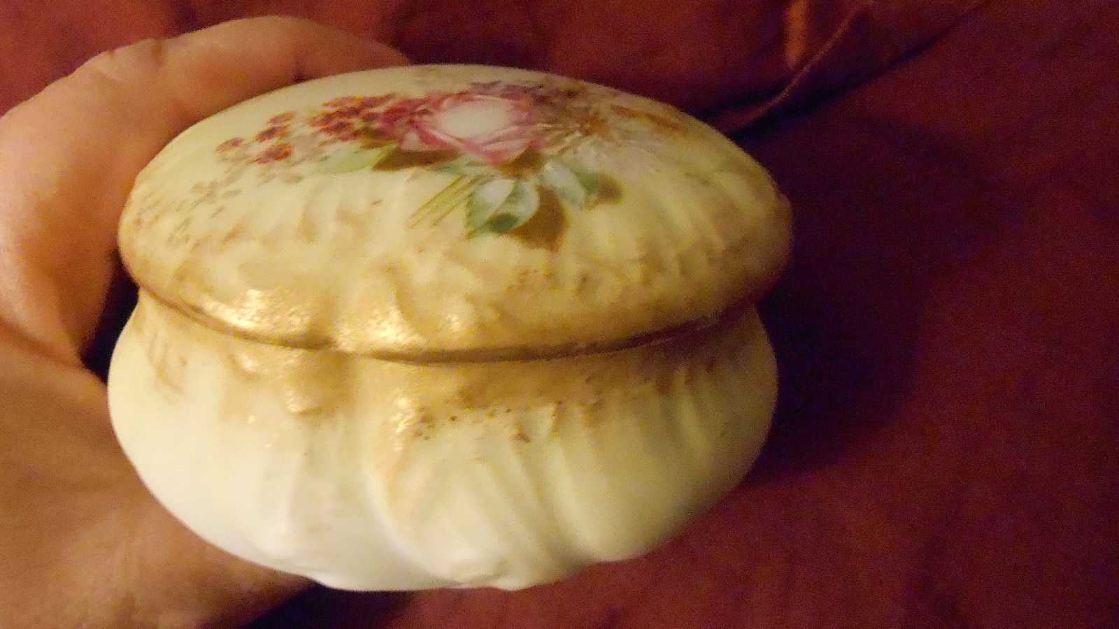 Title (ebay affiliate link): Antique M R MARTIAL REDON Limoges Dresser Jar Box Pink Rose Blue Flowers w Gold