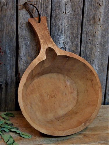 Antique Primitive Large Carved Wood Scoop Bowl Treen Unique AAFA