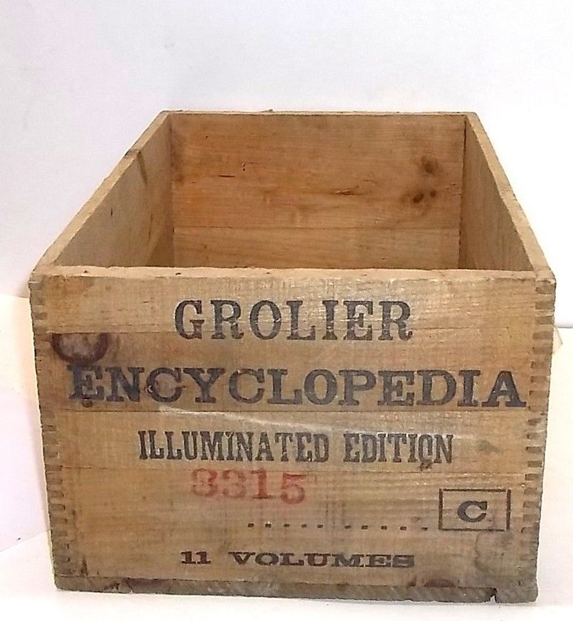 Title (ebay affiliate link): Antique GROLIER Encyclopedia Illuminated Edition Wood Shipping Box Crate Vintage