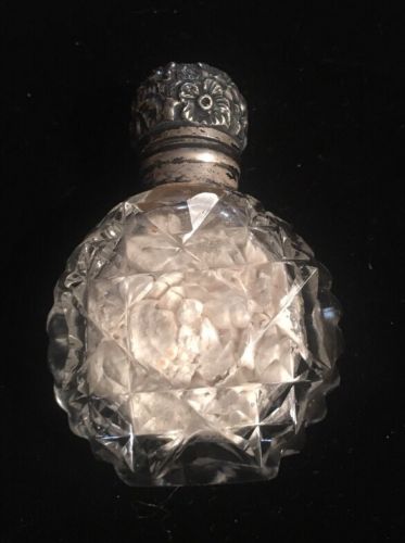 Antique Crystal & Sterling Floral Top Perfume Bottle