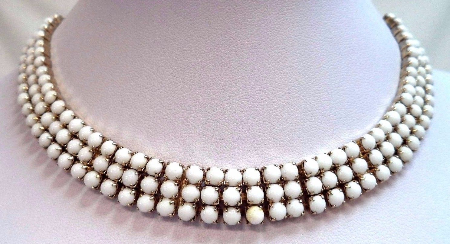 Title (ebay affiliate link): STUNNING VINTAGE ESTATE HIGH END MILK GLASS RHINESTONE 16" NECKLACE!!! G6612Z