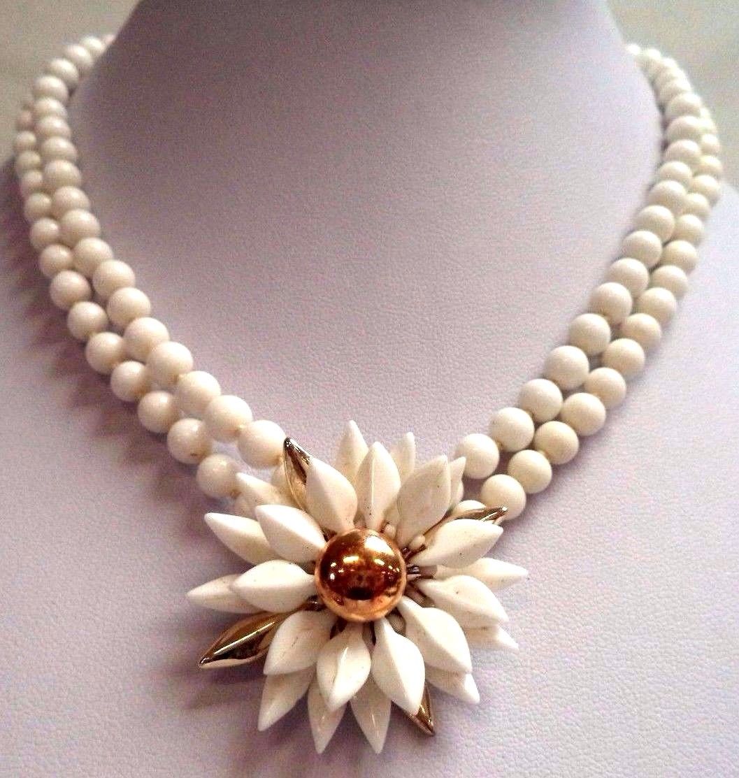 Title (ebay affiliate link): *RARE* VINTAGE SIGNED JAPAN IND KNOTTED MILK GLASS FLOWER 17" NECKLACE!!! G6613G