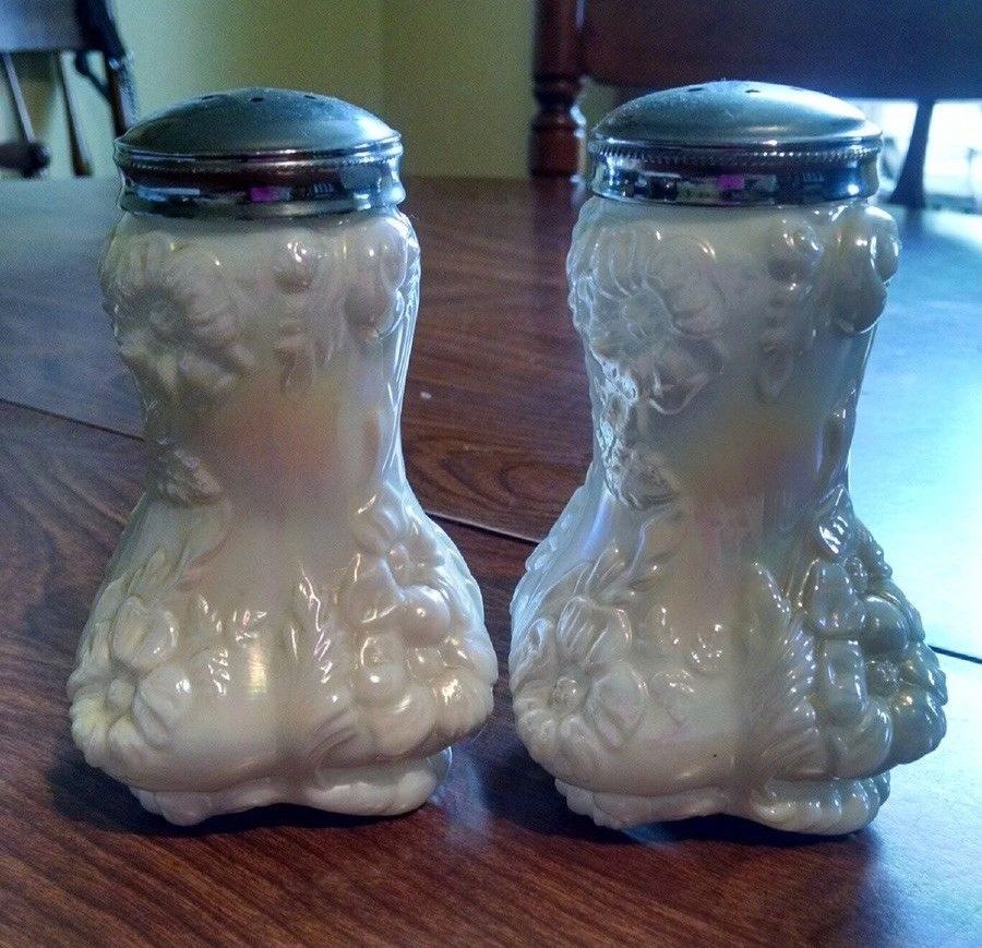 Title (ebay affiliate link): Vintage Antique Milk Glass Salt & Pepper Shakers Victorian Pattern