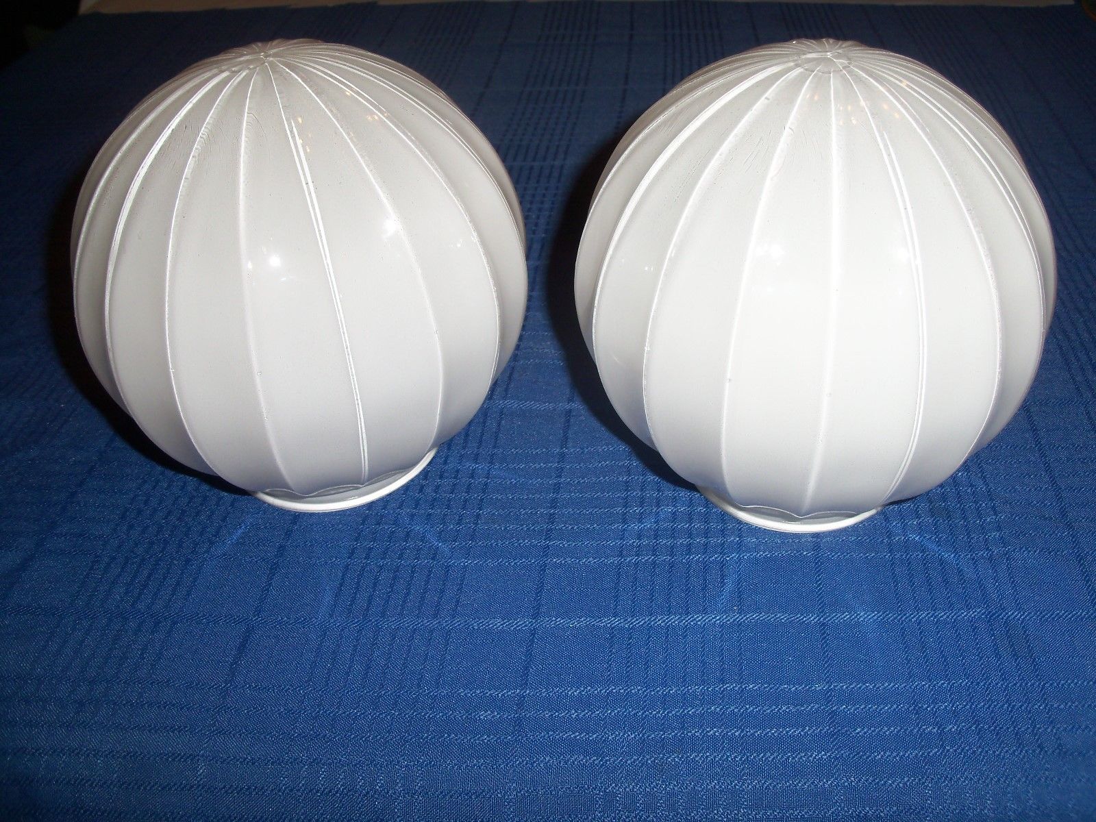 Title (ebay affiliate link): 2- Vintage Milk Glass 6" Ribbed Globe Shades for Pendant or Sconce Lights