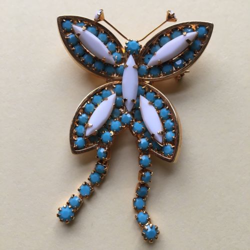 Title (ebay affiliate link): Vintage Juliana White & Turquoise Milk Glass Butterfly Brooch