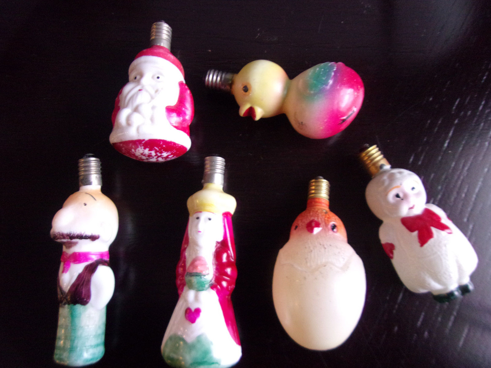 Antique Milk Glass CHRISTMAS LIght BULBS,Man,Queen Lady,Duck,Bird & Egg,Snowbaby