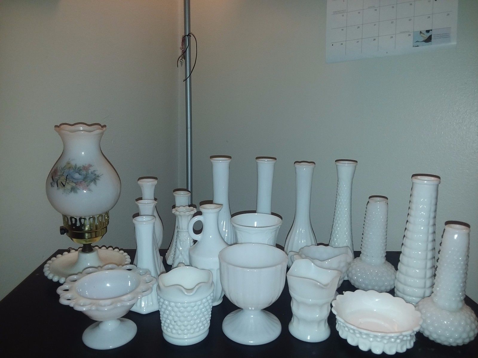 20 Pc Assorted Milk Glass Lot with Bonus Lamp