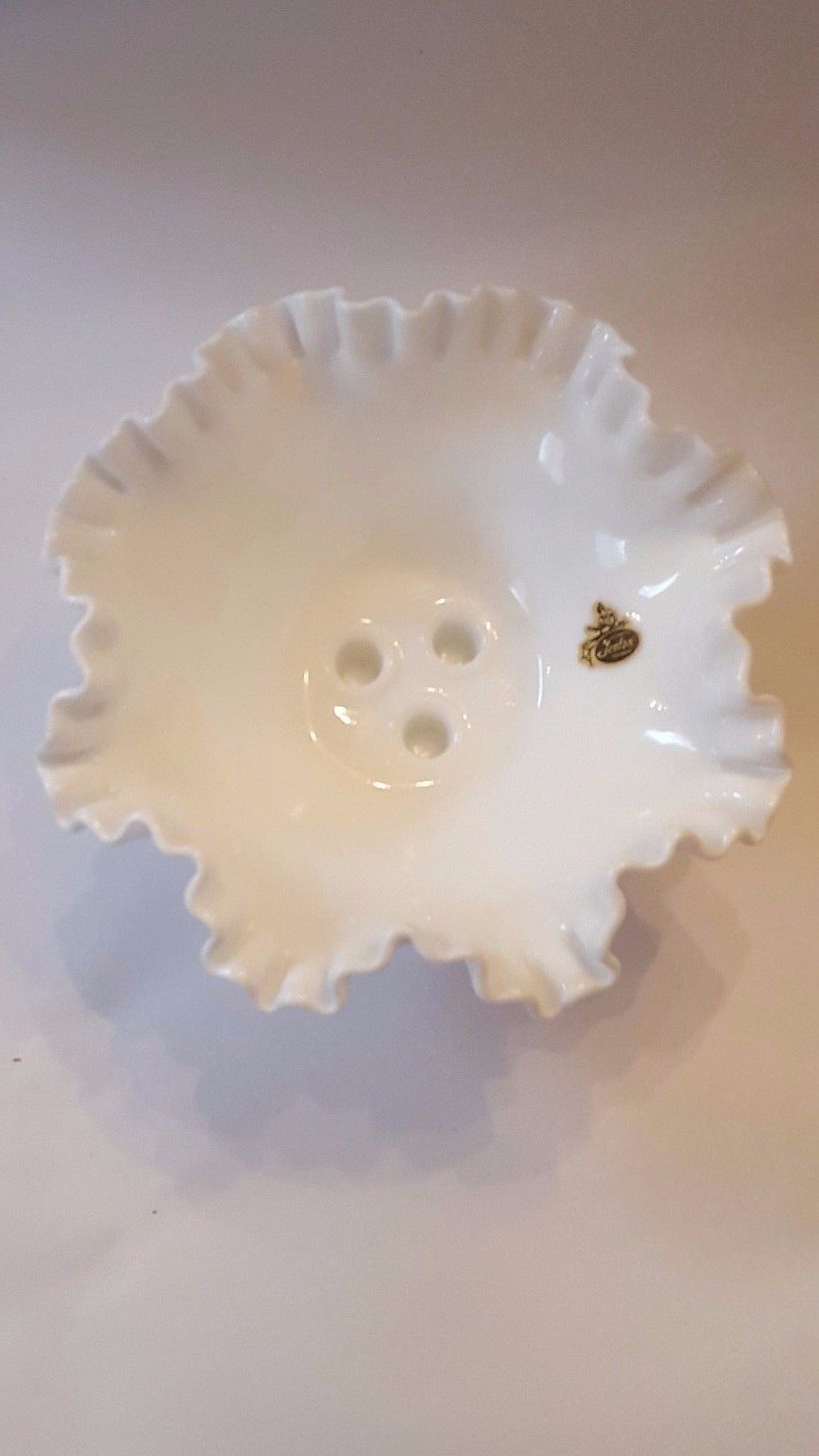 FENTON WHITE MILK GLASS EPERGNE BOWL WITH 3 HORNS