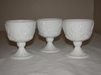 3 WHITE MILK GLASS GRAPE LEAF DESIGN SHERBET/DESERT FOOTED CUP NICE