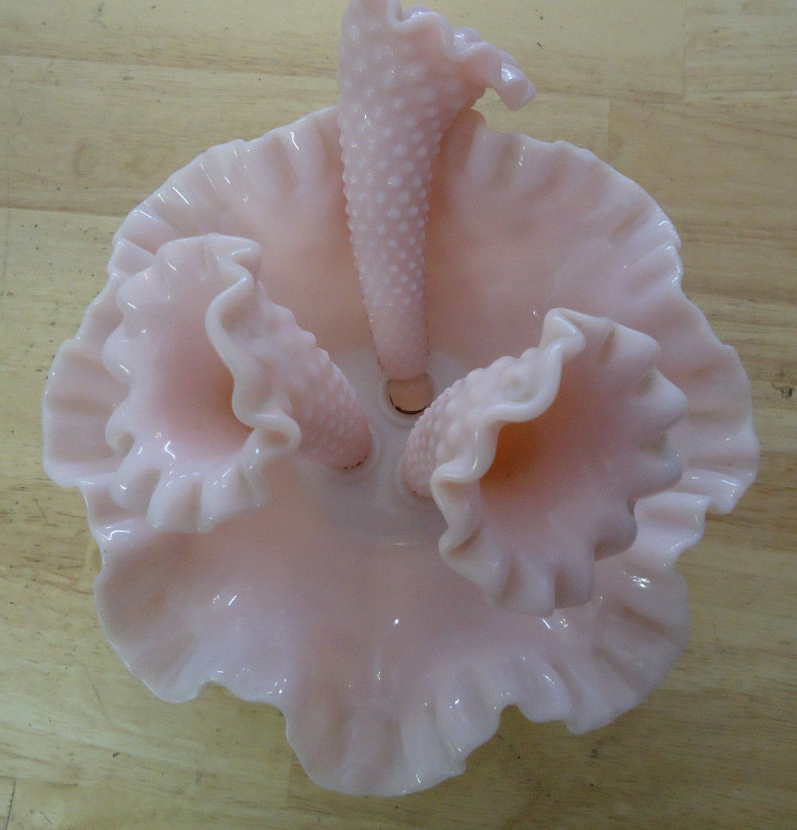 Title (ebay affiliate link): VINTAGE 50s FENTON Rose Pastel Epergne PINK MILK GLASS HOBNAIL BOWL With 3 horns