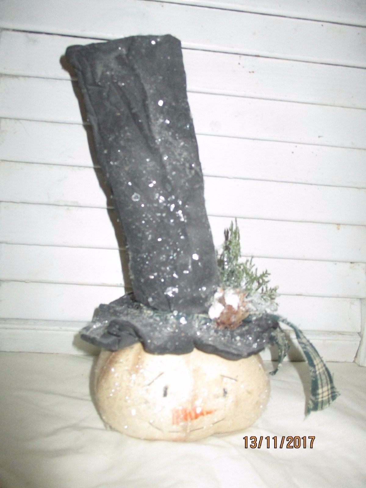 Title (ebay affiliate link): Primitive Grungy Snowman Sitter Handmade Christmas Holiday Gift Doll