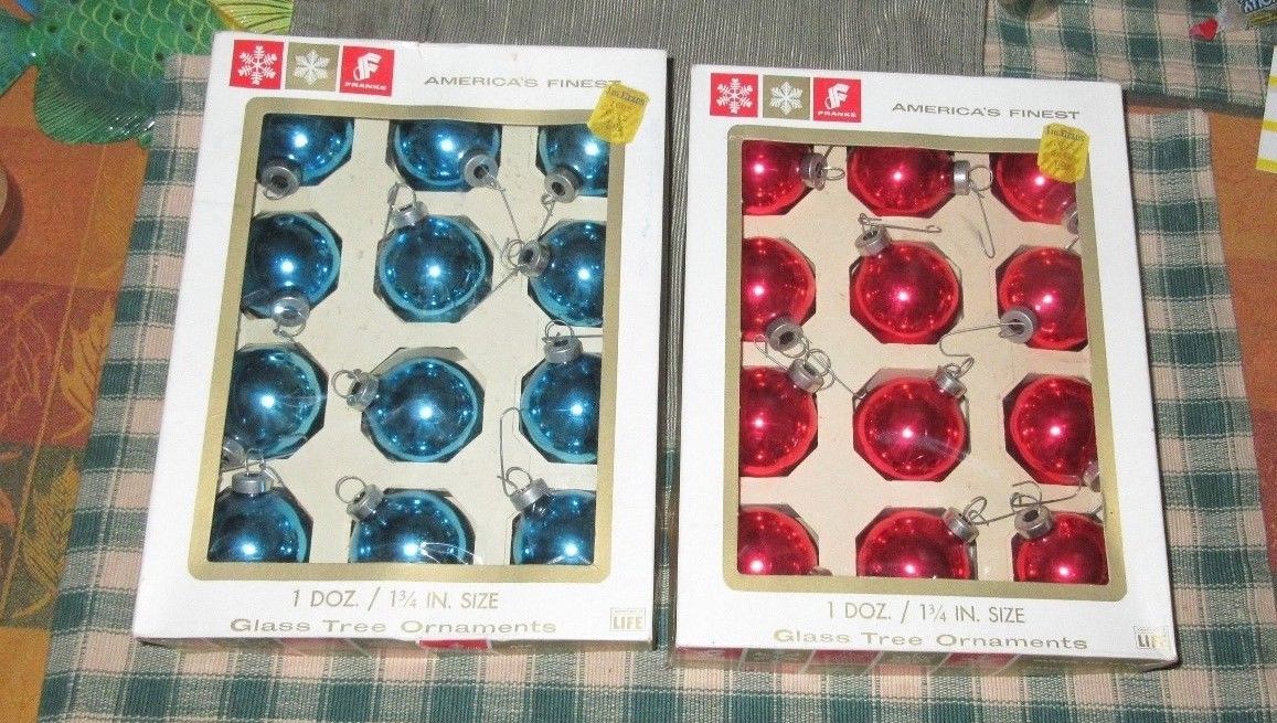 Title (ebay affiliate link): VINTAGE GLASS CHRISTMAS TREE ORNAMENTS x 24 RED BLUE 1.75" FRANKE BOX FINEST USA