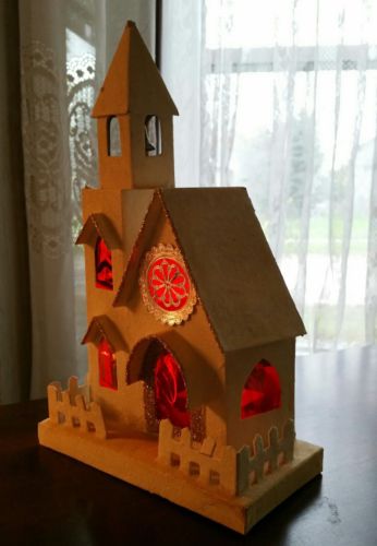 Title (ebay affiliate link): Vintage JAPAN Illuminated Christmas MICA CHURCH Cardboard