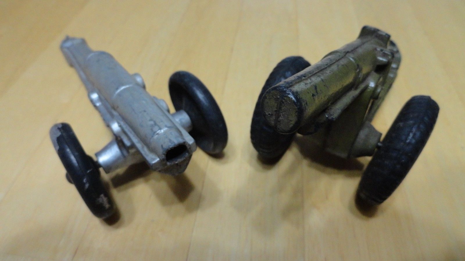 Vintage Rubber AUBURN Army Cannon, Hook up is Missing, & Metal die-cast cannon