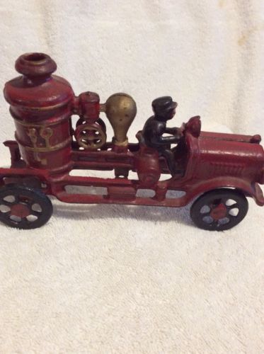 Vintage Cast Iron Fire Engine Pumper Truck 8" long toy