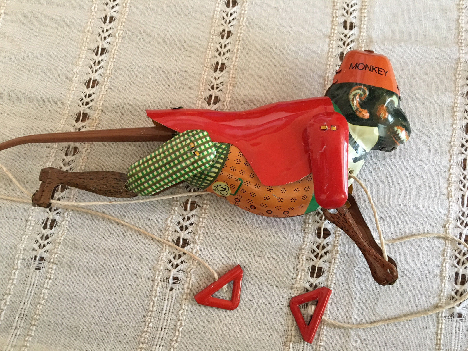 VINTAGE STYLE TIN LITHO CLIMBING MONKEY