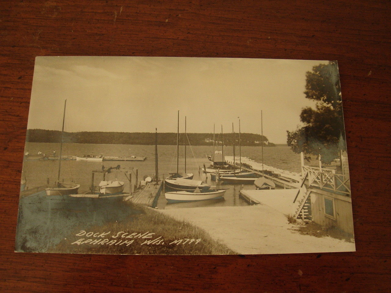 OLD ORIGINAL VINTAGE RPPC PHOTO POSTCARD BOAT DOCKS EPHRAIM BAY WI WISCONSIN