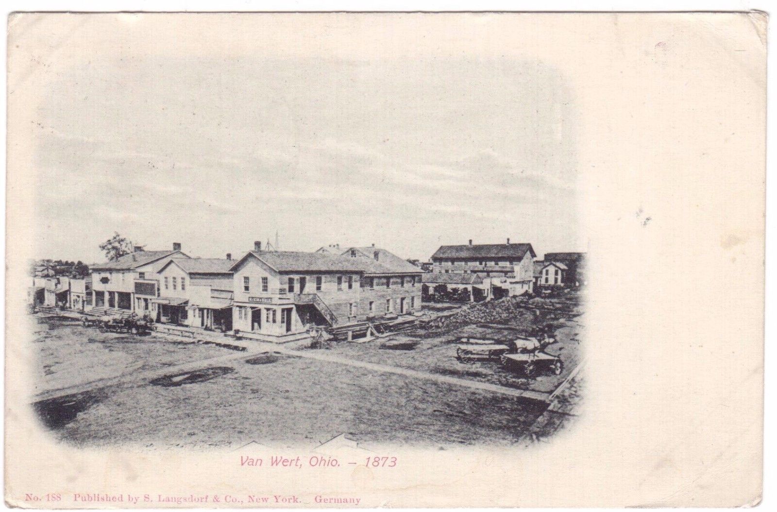 ANTIQUE 1910 VIEW OF VAN WERT OHIO IN 1873 POSTCARD