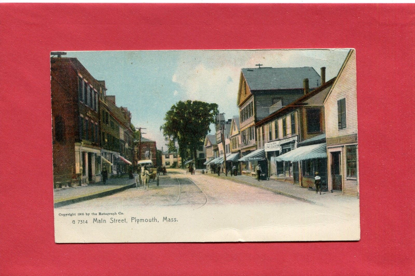 PLYMOUTH, MA. VINTAGE POSTCARD ~NICE EARLY VIEW OF MAIN STREET COPY. 1905
