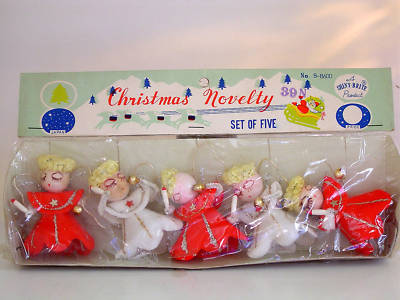 Title (ebay affiliate link): 5 VINTAGE SHINY BRITE ANGEL ORNAMENTS IN ORIGINAL PKG