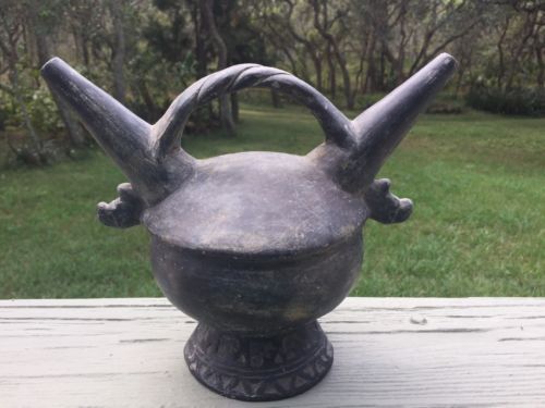 Title (ebay affiliate link): Authentic pre-Columbian Lambeyque Pottery Twin Spouted Bottle Peru NICE!