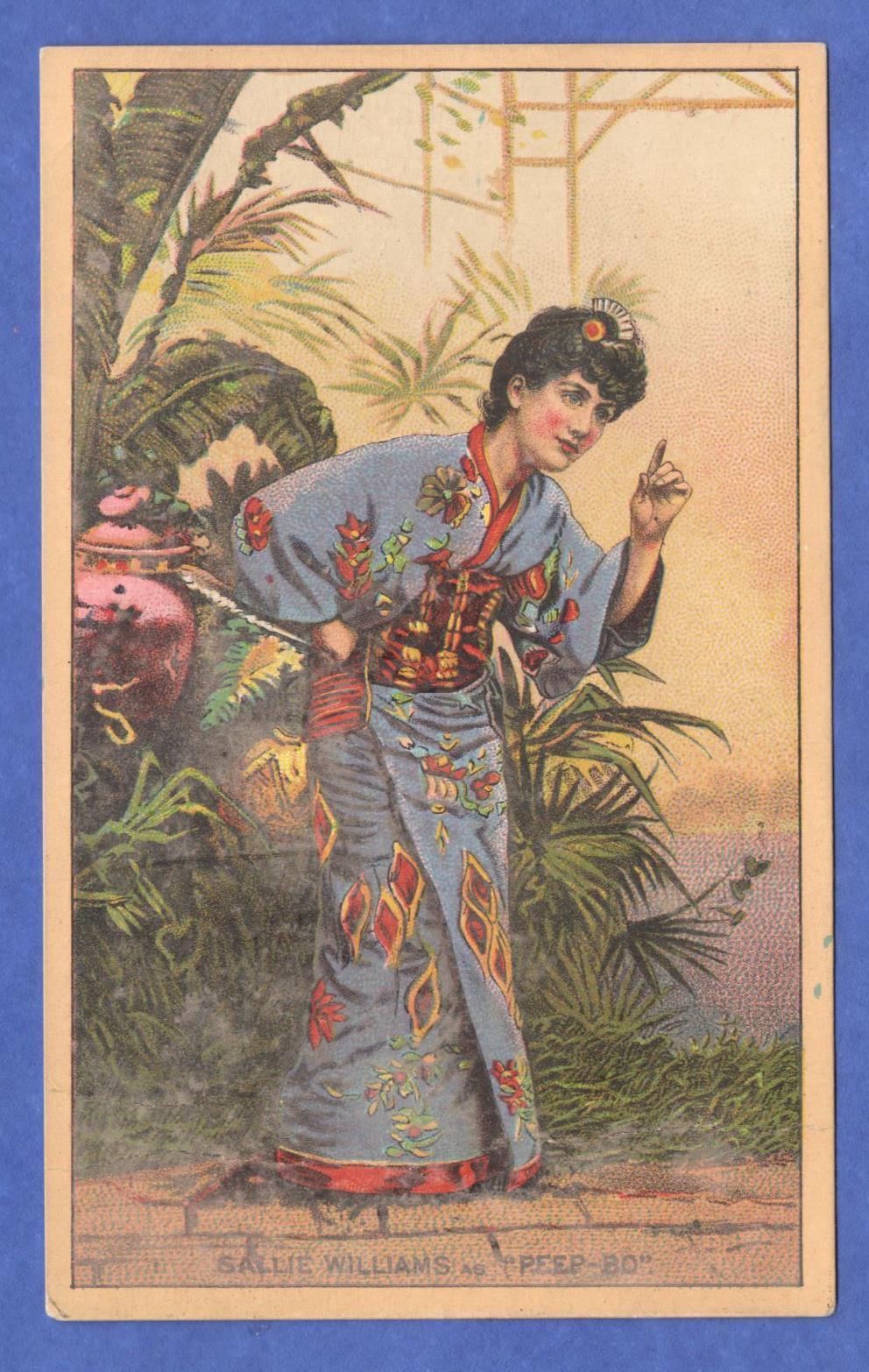 Title (ebay affiliate link): Royal Elixir, "Sallie Williams As Peep-Bo" Victorian Trade Card