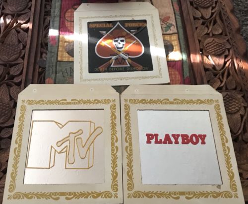 Vintage 80''s Carnival Prize Glass Mirror Lot of 3 MTV Playboy Special Forces