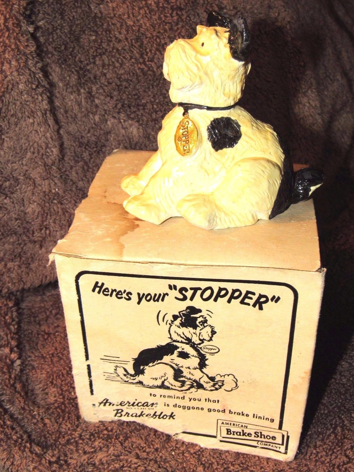 Title (ebay affiliate link): NICE 1950''S AMERICAN BRAKEBLOK "STOPPER" ADVERTISING DOG W/ORIGINAL BOX