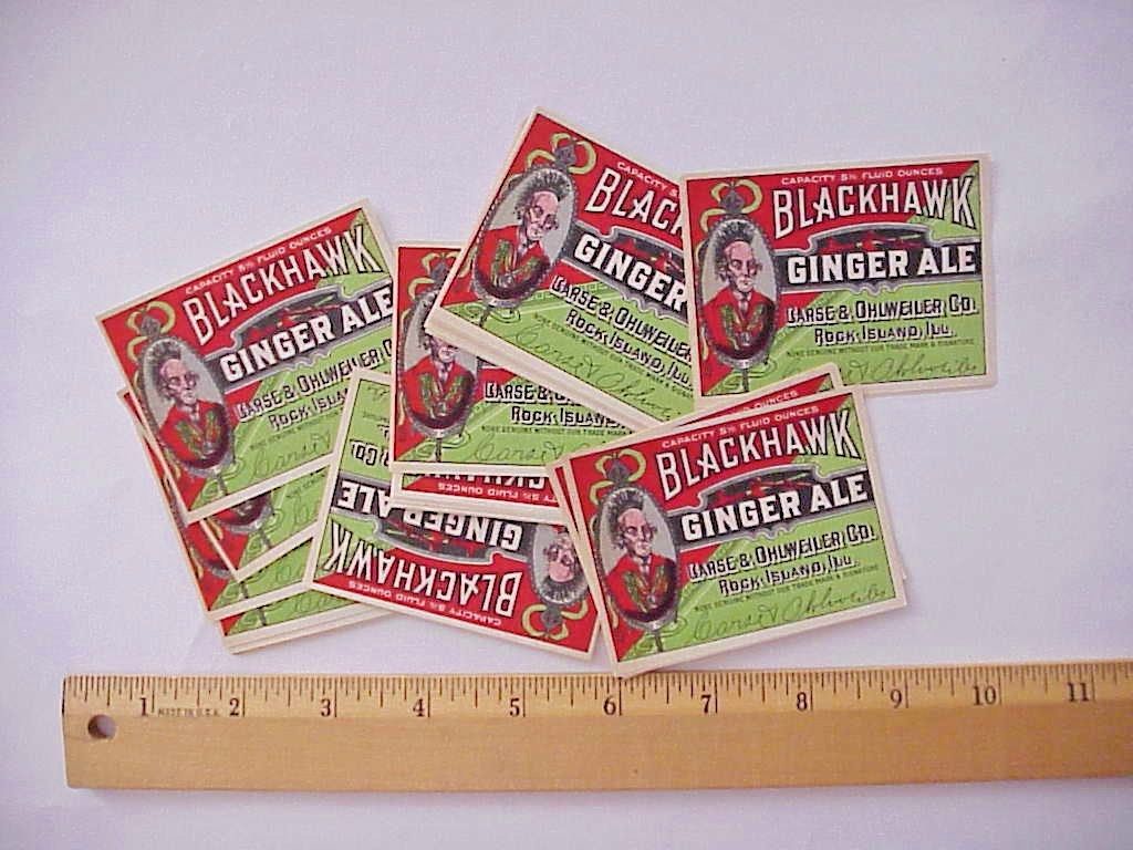 Title (ebay affiliate link): ORIGINAL Antique Blackhawk Ginger Ale Soda Label Lot of 45+ Rock Island IL MINT