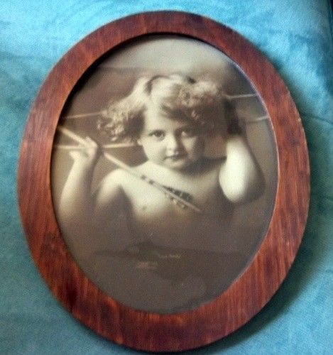 Antique Oval Quarter Sawn Oak Picture Frame + Cupid Awake Print 1897 Parkinson