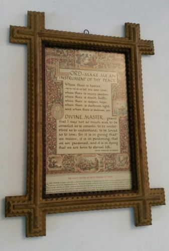 Title (ebay affiliate link): Lg Antique Tramp Art Adriondak Frame Catholic Peace Prayer Of St. Francis Assisi