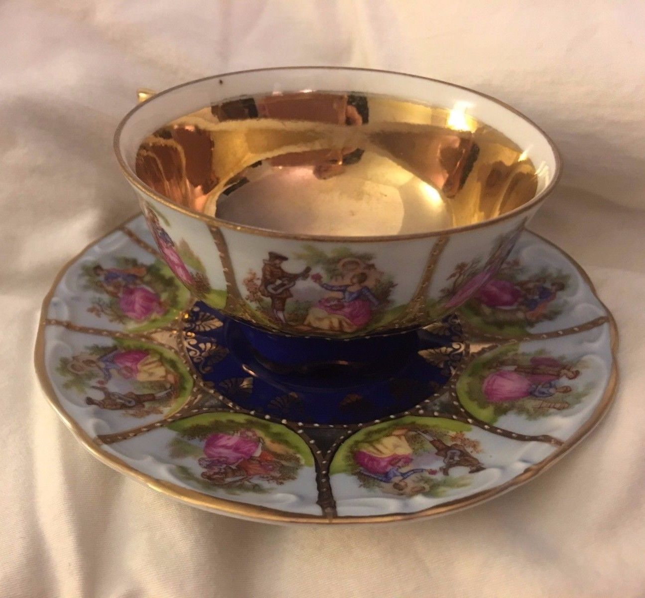Gold Hand Painted STW Bavaria Germany Fragonard "Love Story" Teacup & Saucer