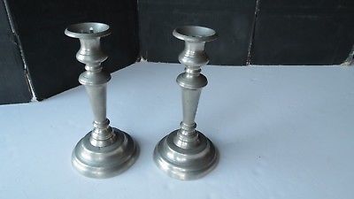 Antique Pewter Push Up Candlesticks