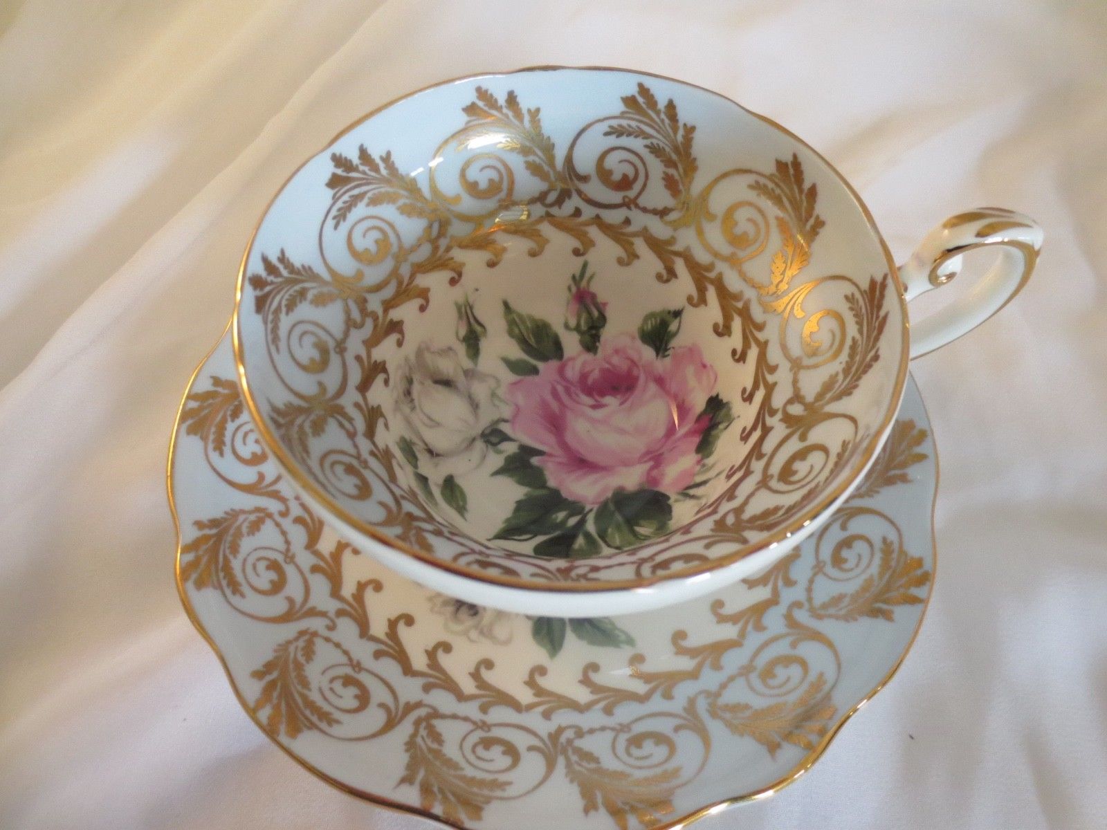 Title (ebay affiliate link): EB FOLEY - Vintage English Tea Cup & Saucer - Signed 37/4 Roses Gilt Scrollwork