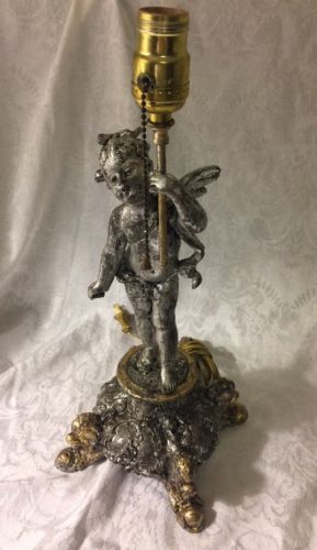 Victorian Era Cherub Cupid Figural Lamp Cast Spelter - 17"