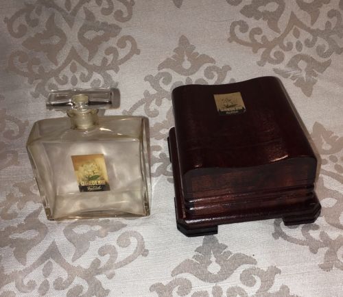 Title (ebay affiliate link): RARE 30s DECO GARDENIA PERFUME COLOGNE BOTTLE w/WOOD CASE FIBAH VTG ANTIQUE