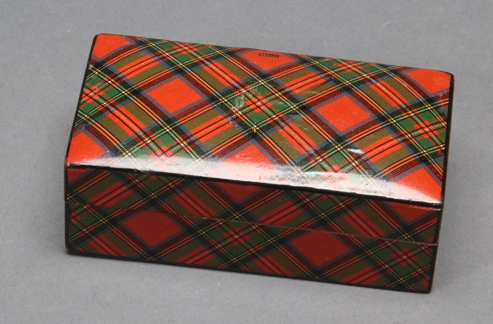Title (ebay affiliate link): Antique Victorian Scottish Scottish Mauchline Box labelled Stuart Tartan Plaid